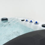 Wanna z hydromasażem Onyx ma nieco inny kształt niż większość produktów z serii Platinum Spas Premium, charakteryzując się bardziej nowoczesnymi, kanciastymi i ostrymi kątami, co czyni ją doskonałym wyborem do nowoczesnych ogrodów.